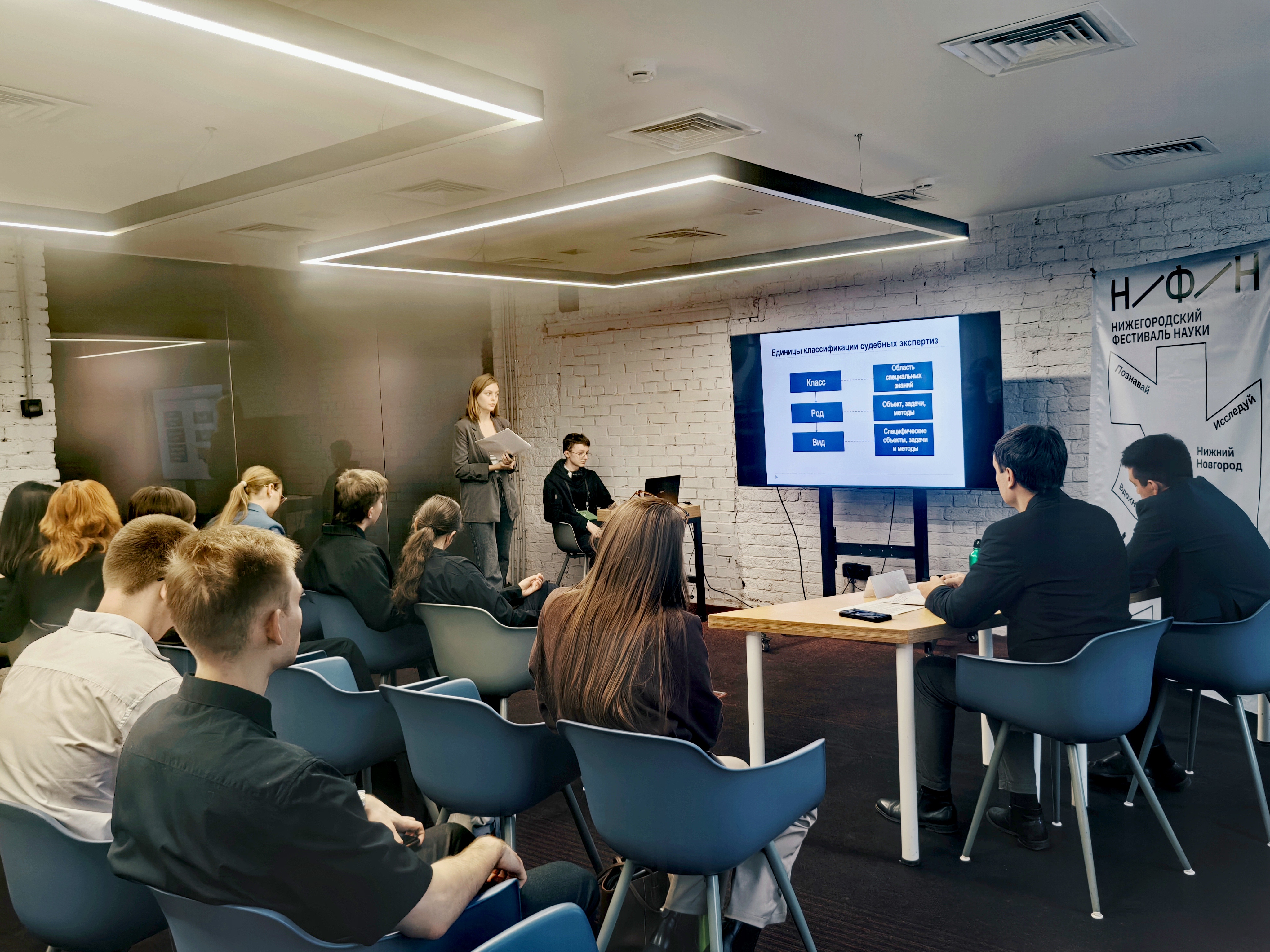 📋Старший преподаватель кафедры судебной экспертизы юридического факультета ННГУ Наталья Алексеевна Москалёва и студенты 5 курса Евгения Баранова, 4 курса Мария Сергеева , 3 курса Ксения Дёмкина, Алина Каримова, Надежда Купцова и Анна Мельник представили свои научные работы.